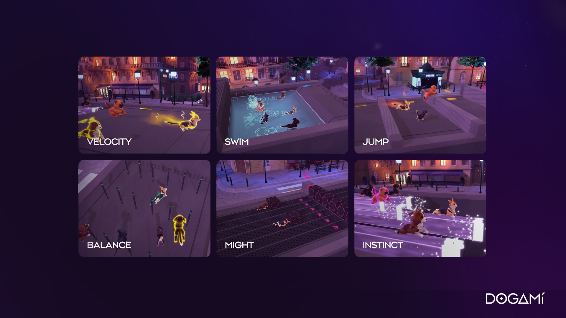They are used to define the movement speed of a Dogamí during races. For example, the swim determines the speed in swimming pools, while balance determines the speed on balance beams.